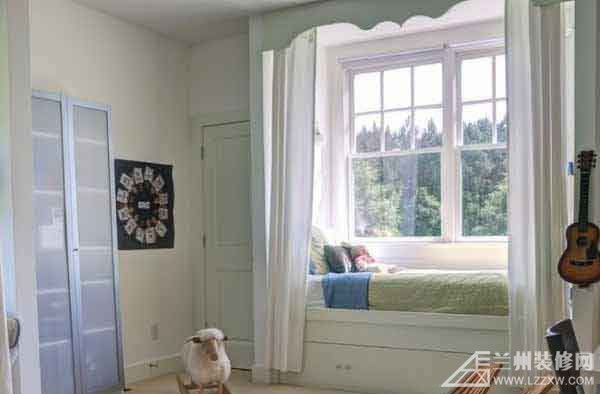 如果飘窗不大,窗台离地又较高,则最适合改造成功能型的使用空间。像如果飘窗高度刚好与床的高度相等,则可以把床紧挨着飘窗放置,飘窗就变成了床头柜。