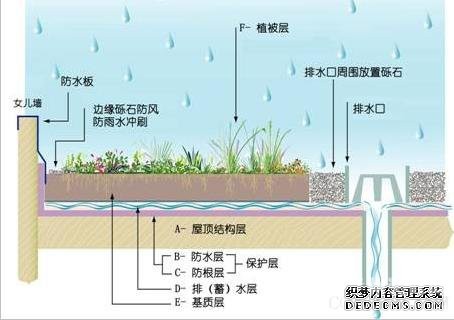 屋顶花园要能够在混凝土板上种植七、八米高的大树,这就对土壤和疏水层有很高的要求。疏水层的处理难度很大,采用疏水层材料,解决了下雨、浇水时多余水分的过滤、排放问题,不会造成积水而导致植物根系腐烂。